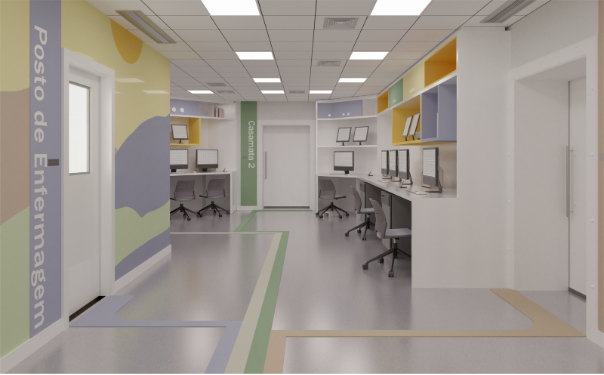 O uso terapêutico das cores — ganha cada vez mais espaço em projetos hospitalares voltados à saúde, principalmente em alas infantis e unidades de cuidados paliativos. A exposição a determinadas cores pode contribuir para a melhora do humor, redução do estresse e até mesmo auxiliar no controle da dor, favorecendo a recuperação dos pacientes e tornando o ambiente mais acolhedor.